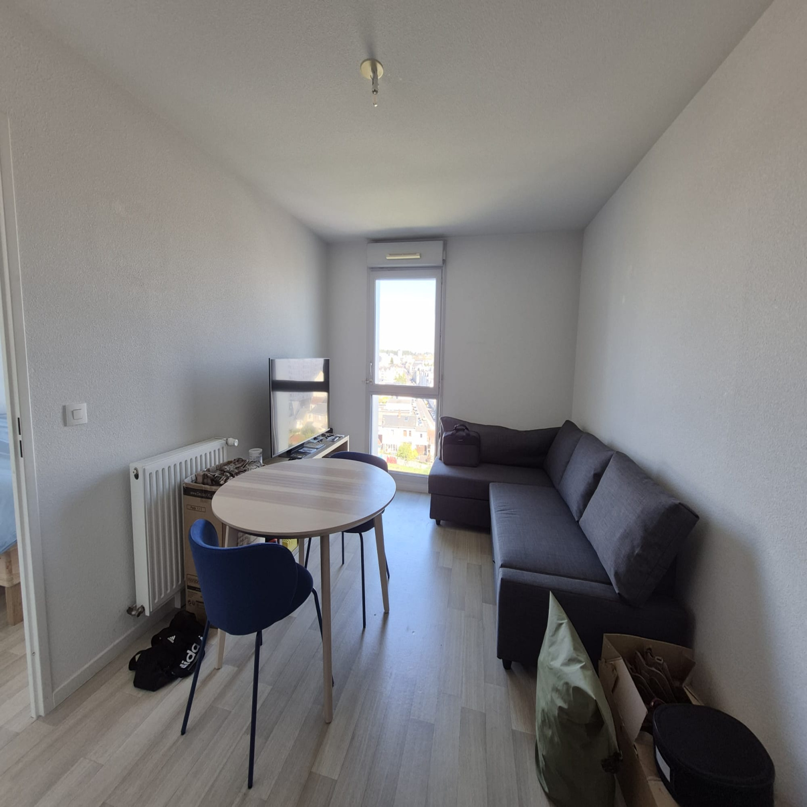 Une pièce de vie avec kitchenette